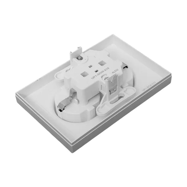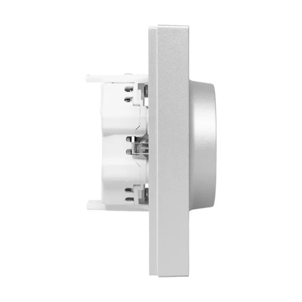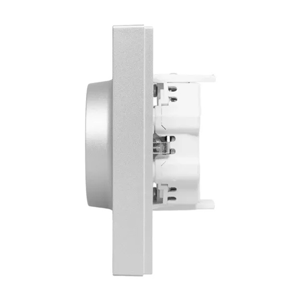 Розетка комплектуется декоративной рамкой в соответствующем цвете, что позволяет легко вписать её в интерьер помещения. Устройство полностью готово к установке и отличается простым, интуитивно понятным монтажом.
