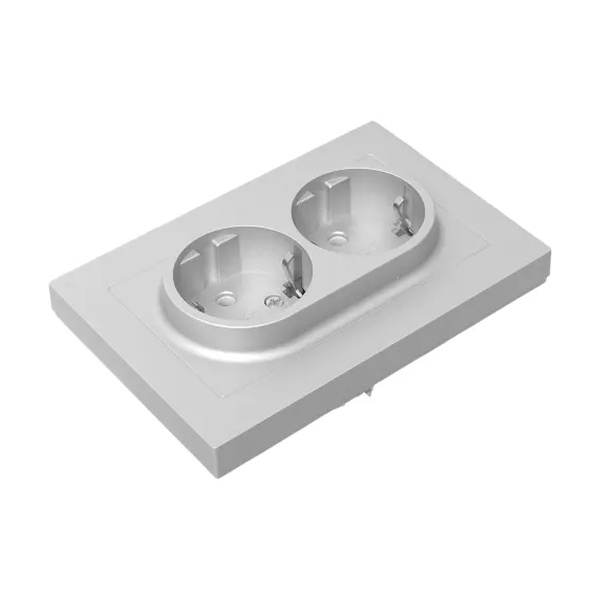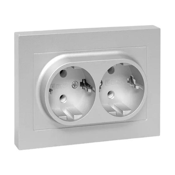 Электрическая двойная розетка с заземляющим контактом скрытой установки в одну монтажную коробку, алюминиевого цвета, винтовое подключение ЕКФ Эпика UP1-SOA-210