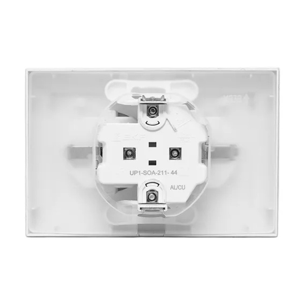 Универсальный механизм розетки совместим как с медной, так и с алюминиевой проводкой, обеспечивая надежное соединение и безопасную эксплуатацию.