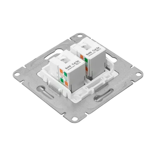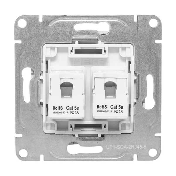 Двухместная информационная розетка RJ45 пятой категории скрытой установки цвета алюминий, Эпика UP1-SOA-2RJ45-5