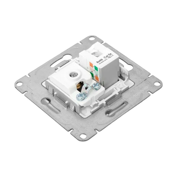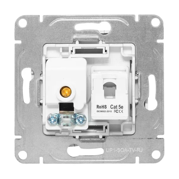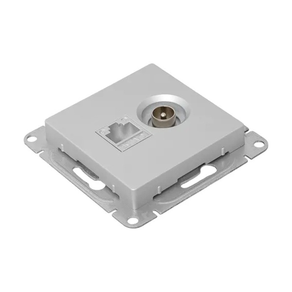 Комбинированная антенная и информационная розетка RJ45 пятой категории скрытой установки цвета алюминий, Эпика UP1-SOA-TV+RJ