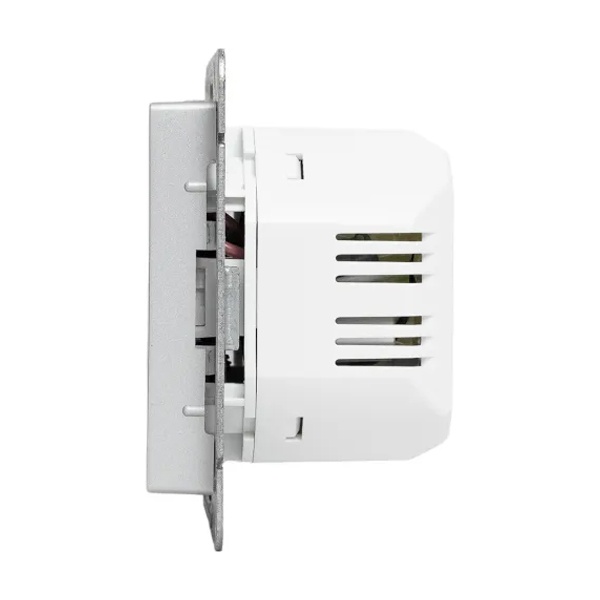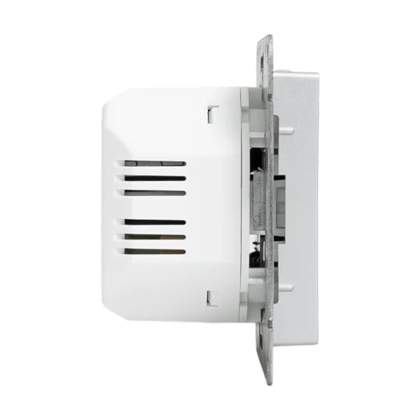 Розетка совместима как с медным, так и с алюминиевым кабелем, а надежные винтовые клеммы гарантируют прочное соединение. Все винты выполнены с одинаковым шлицем, что упрощает монтаж — смена инструмента не потребуется. Покрытие Soft-Touch обладает приятной на ощупь бархатистой фактурой и защищает поверхность от мелких царапин, отпечатков пальцев и выцветания, позволяя устройству длительное время сохранять аккуратный и презентабельный вид.