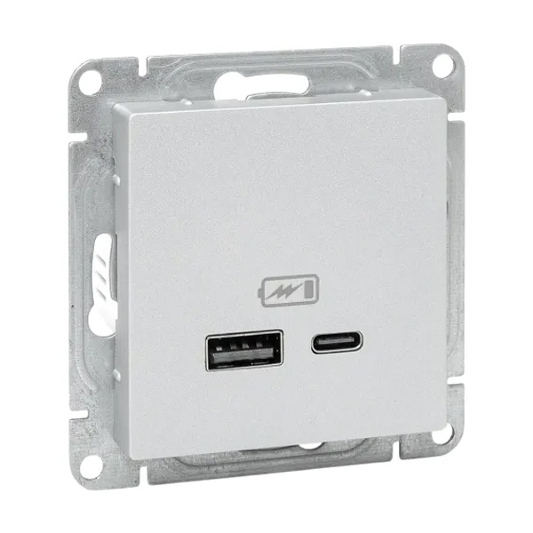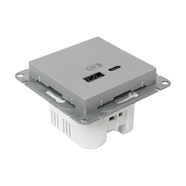 Двухместное зарядное устройство USB TypeC+TypeA скрытой установки алюминиевого цвета, Эпика UP1-SOA-USBA+USBC