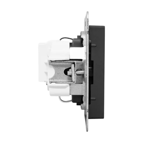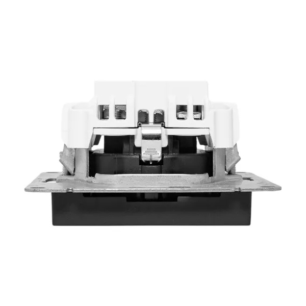 Универсальный механизм розетки совместим как с медной, так и с алюминиевой проводкой, обеспечивая надежное соединение и безопасную эксплуатацию.