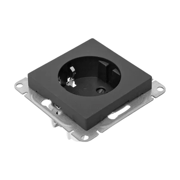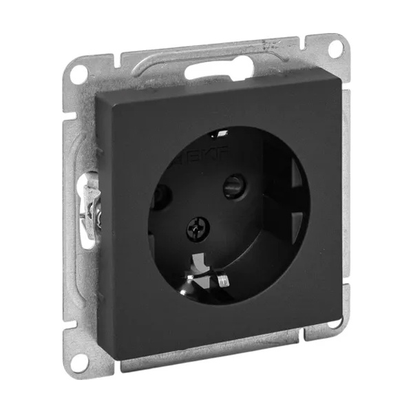 Электрическая розетка с заземляющим контактом и шторкми скрытой установки черного цвета, винтовое подключение ЕКФ Эпика UP1-SOB-111