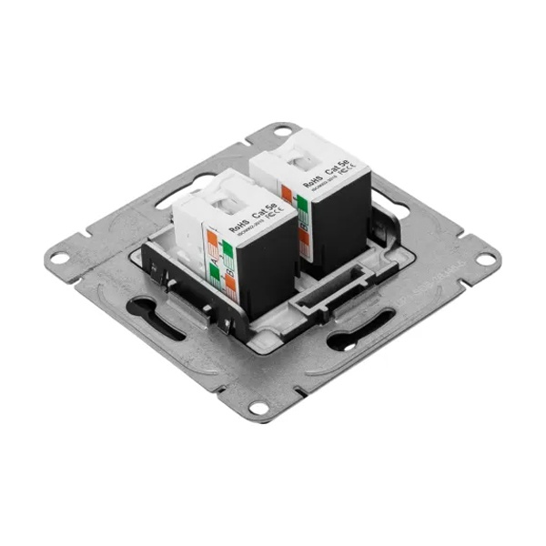 Двухместная информационная розетка RJ45 пятой категории скрытой установки черного цвета, Эпика UP1-SOB-2RJ45-5