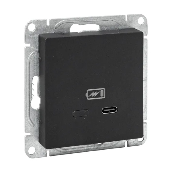 Быстрая одноместная зарядка USB TypeC скрытой установки черного цвета, Эпика UP1-SOB-USBCF