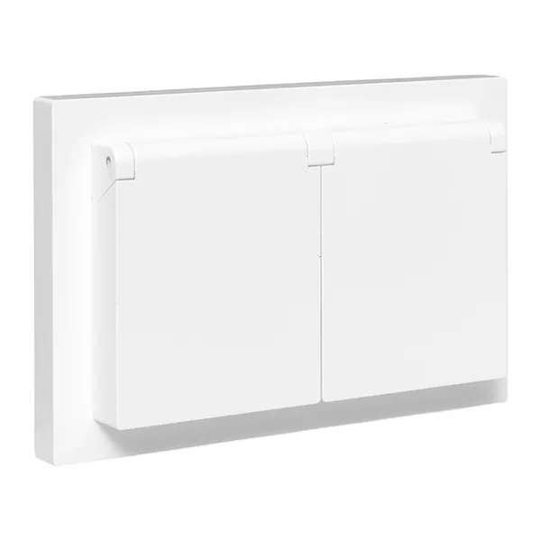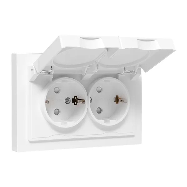 Электрическая двухместная розетка с защитным заземлением, шторками и откидной крышкой, скрытой установки в одну монтажную коробку, белого цвета, винтовое подключение ЕКФ Эпика UP1-SOW-211-44