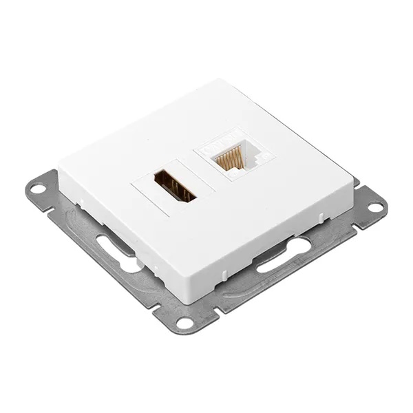 Комбинированная мультимедийная HDMI и информационная розетка RJ45 пятой категории скрытой установки белого цвета, Эпика UP1-SOW-HDMI+RJ45