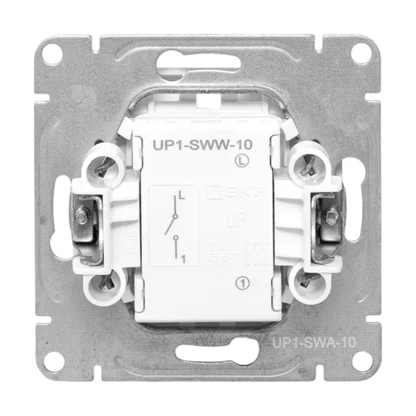 Механизм одноклавишного выключателя с винтовым подключением для скрытой установки алюминиевого цвета, ЕКФ Эпика UP1-SWA-10