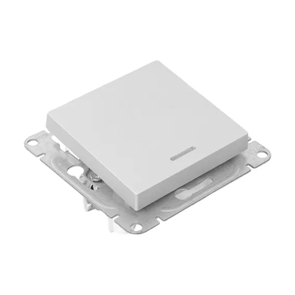 Механизм одноклавишного выключателя EKF «Эпика» с подсветкой — включает и выключает свет из одного места.