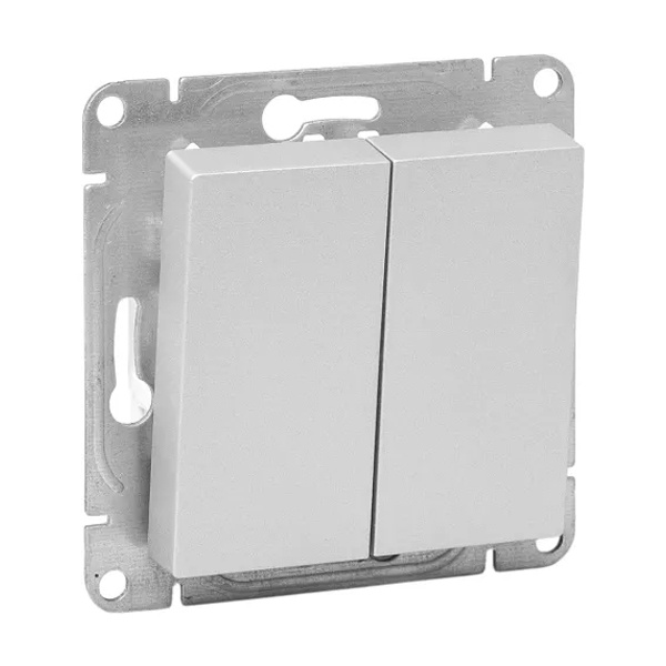 Двухклавишный крестовый переключатель скрытой установки алюминиевого цвета, винтовое подключение ЕКФ Эпика UP1-SWA-22