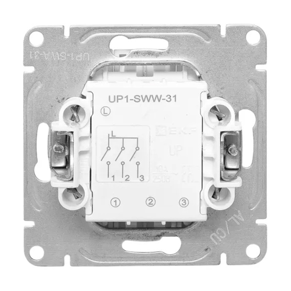 Механизм трехклавишного выключателя для скрытой установки алюминиевого цвета, винтовое подключение ЕКФ Эпика UP1-SWA-31