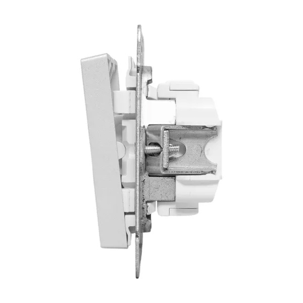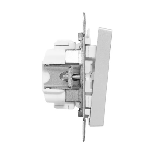 Универсальный механизм выключателя совместим как с медной, так и с алюминиевой проводкой, что делает его удобным для монтажа в любых типах жилых и коммерческих помещений.