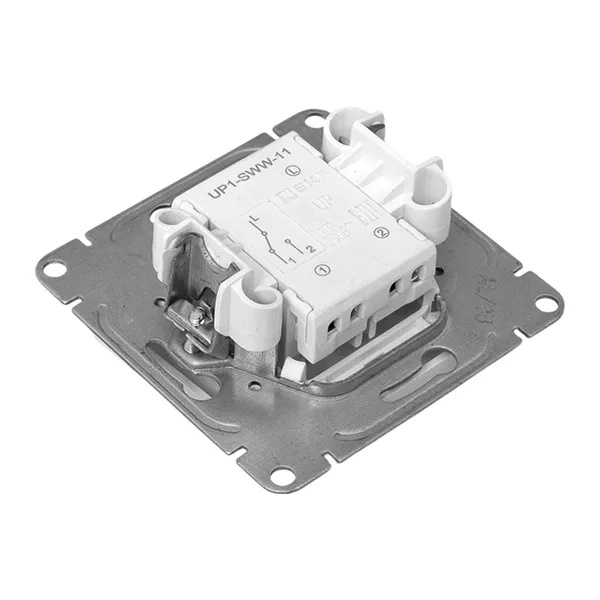 Механизм одноклавишного проходного выключателя скрытой установки белого цвета, винтовое подключение ЕКФ Эпика UP1-SWW-11