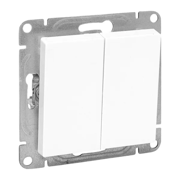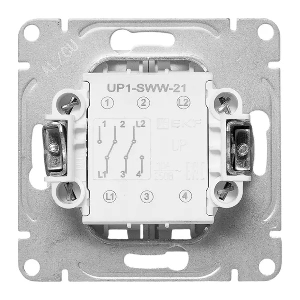 Двухклавишный проходной выключатель скрытой установки белого цвета, винтовое подключение ЕКФ Эпика UP1-SWW-21