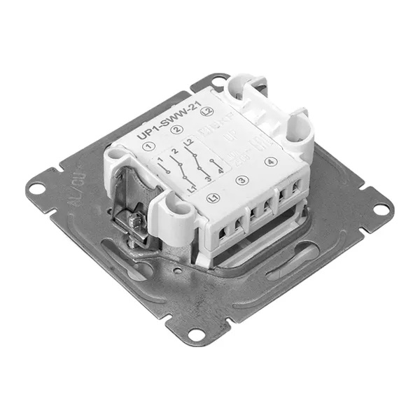 Универсальный механизм выключателя совместим как с медной, так и с алюминиевой проводкой, что делает его удобным для монтажа в любых типах жилых и коммерческих помещений.