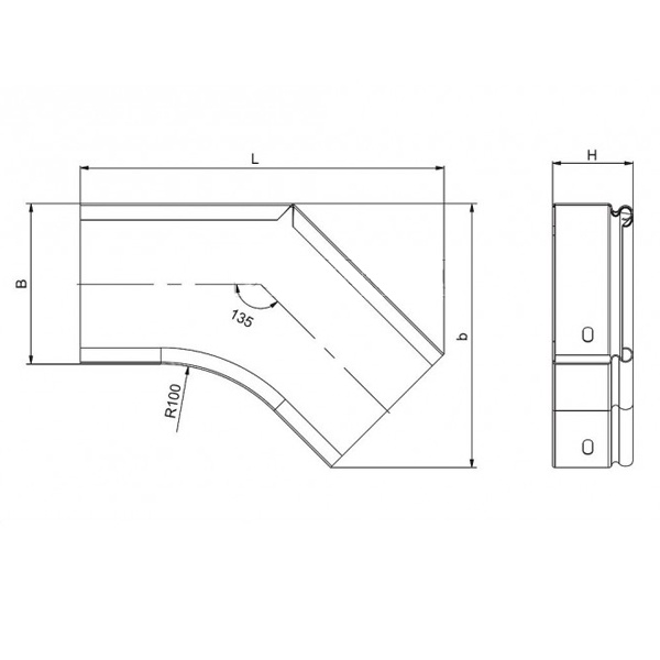 Металлический плоский внутренний плавный угол в 90 градусов Ostec для кабельных лотков размером 200*100 мм УПТп-200х100