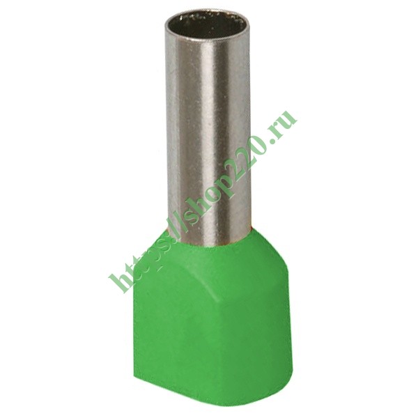 Наконечник-гильза НШВИ 16,0 мм2, длиной втулки 14 мм, под два провода медный луженый с изолированным фланцем, зеленый, ИЭК UTE10-D16-0-100