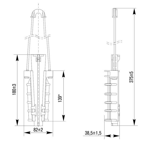 Анкерный клиновой зажим-держатель для монтажа провода СИП к столбу или к дому UZA-14-D50-D70-1500-ECLN