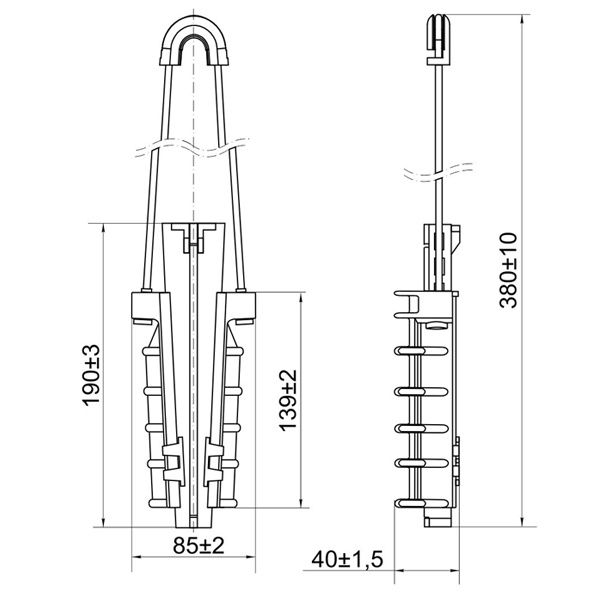Анкерный зажим PA 1500 используются для натяжного поддерживания низконапряженных самонесущих кабельных жил с изолированной несущей нейтралью на деревянных, железобетонных, металлических опор и фасад жилых домов.