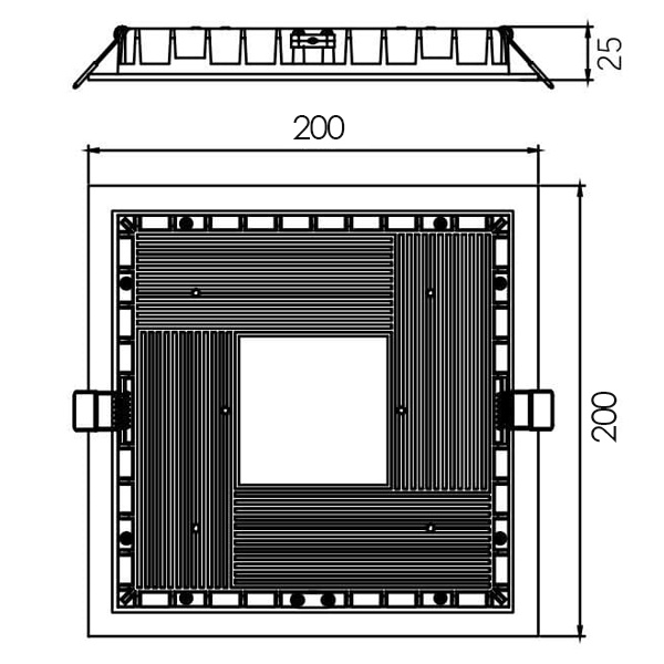 - Монтаж в потолки Грильято (требуется дополнительная фиксация светильников на страховых тросах)