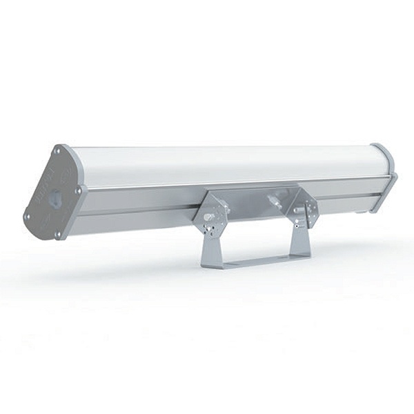 Поворотное крепление монтируется на ровную поверхность потолка или стены. Угол поворота 180°, с шагом 30°. Позволяет настраивать угол освещенности светильников в помещениях складских зон, промышленных цехов или на открытом воздухе