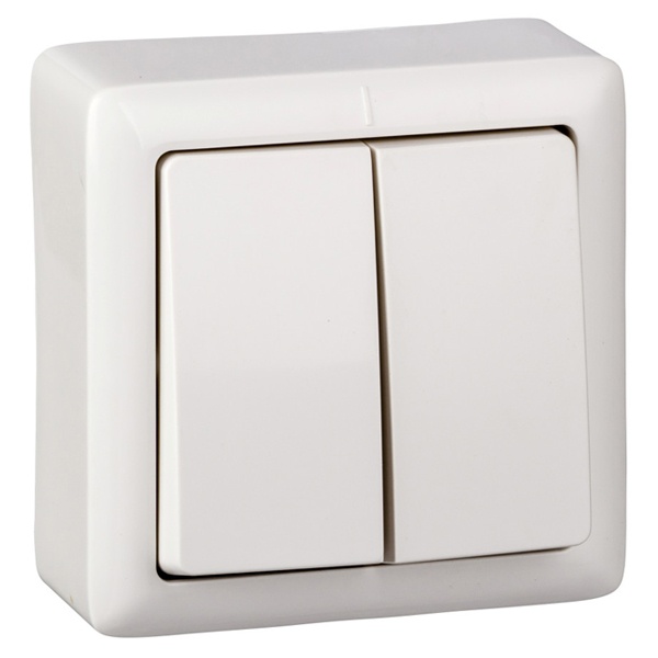 Выключатель двухклавишный Schneider Electric РОНДО (открытой установки, цвет белый) предназначен для сетей до 250 В, на ток до 6 А.- Выключатель изготовлен из ABS-пластика, прост в установке, прочен и надежен в применении.- Двухклавишный выключатель позволяет управлять двумя источниками света с одной точки.- Сделано в России.