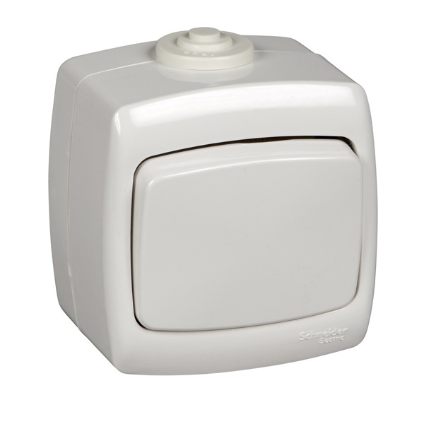 Влагозащищеный (IP44) переключатель Шнайдер Электрик серии Рондо для внешней установки, 10 ампер, белого цвета. VA610-126B-BI