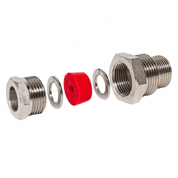 Герметичный сальник от компании ЕКФ из нержавеющей стали для ввода нагревательного кабеля в трубы диаметром 3/4 и 1 дюйм