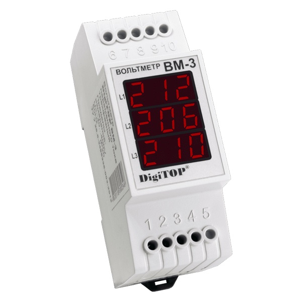 Вольтметр Вм-3 40-450В измерение напряжения трехфазной сети (ТОЛЬКО ФАЗНОЕ)(white) 46-408