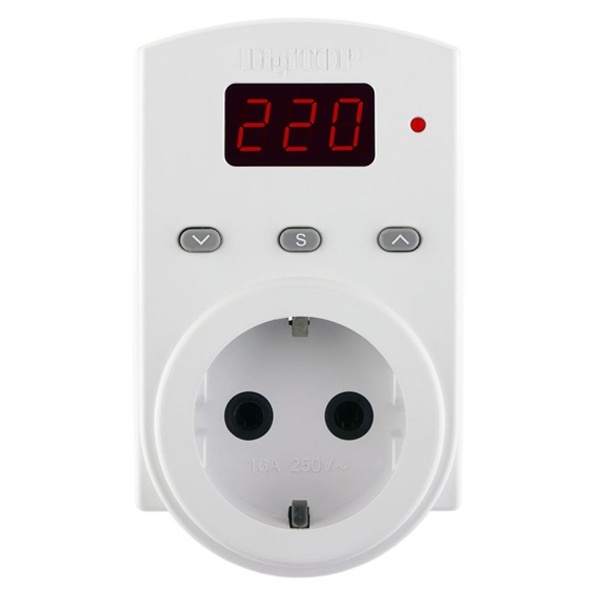 Реле напряжение Vp-16AS в розетку, с цифровым индикатором, максимальный ток 16 Ампер 46-019