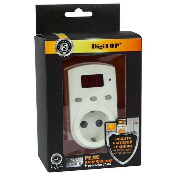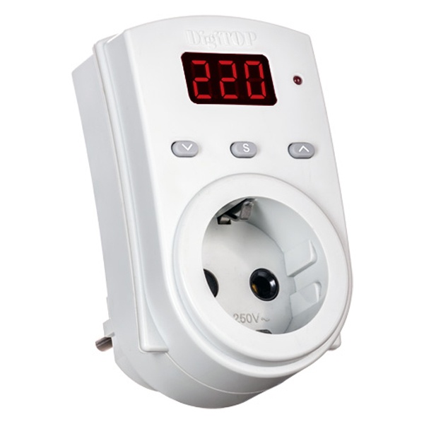 Устройство защиты постоянно анализирует напряжение в сети и в случае выхода напряжения за установленные пределы происходит аварийное отключение подключенных приборов. Для этого пользователь устанавливает необходимые верхний и нижний пределы напряжения и время, через которое РЕЛЕ НАПРЯЖЕНИЯ подключит включенную в него бытовую технику, после нормализации напряжения.