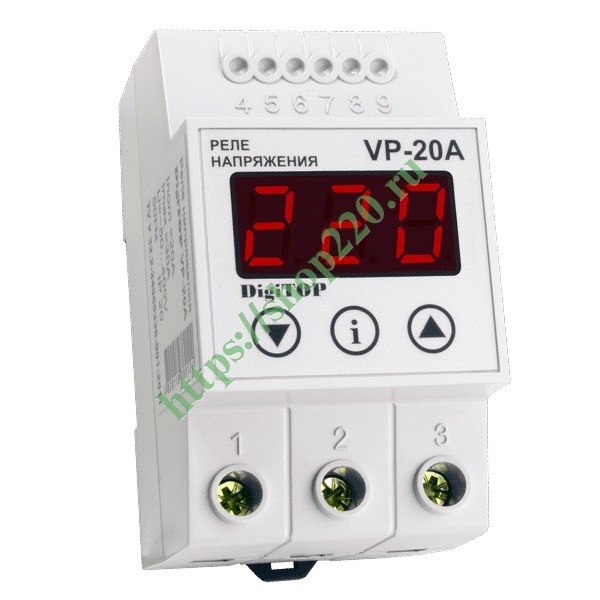 Модульное реле напряжения в однофазной сети с номинальным током нагрузки 20 Ампер Vp-20A