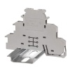 Серая проходная самозажимная клемма на DIN Рейку для проводников сечением до 2,5мм2, три уровня 6 контактов с заземляющим, ДКС VPR-2.5-PE-3L