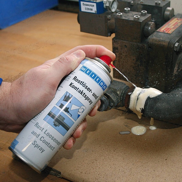 Многофункциональный спрей Rust Loosener и Contact Spray немецкого бренда Weicon незаменим для ремонта и технического обслуживания и подходит для различных сплавов. Он сочетает в себе сразу шесть функций: ослабляет ржавчину, вытесняет влагу, защищает от коррозии, смазывает контактные поверхности, обеспечивает контакт и ухаживает за металлом. Благодаря своей превосходной формуле он проникает даже в самые маленькие промежутки, ослабляя ржавчину. Трехходовой распылительный клапан позволяет работать в любом положении (даже над головой). Средство растворяет заржавевшие и жесткие детали, винты, болты, звенья (кардан) и шарниры, обеспечивает функционирование механических деталей и контактов. Оно вытесняет влагу из систем зажигания и предотвращает утечки тока и потери напряжения. Объем спрея в баллоне составляет 400 мл. Он имеет запах керосина и бежевый цвет. Диапазон рабочих температур для его использования: от - 20 до +50 градусов Цельсия. Срок годности средства – 24 месяца.