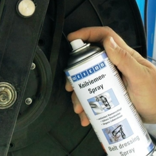 Спрей для приводных ремней Belt Dressing Spray немецкой фирмы Weicon – это прозрачное покрытие на основе синтетических эластомеров, предназначенное для обработки сильно нагруженных приводных ремней разного вида. Состав глубоко проникает в поры детали, придавая ей эластичность, защищает от старения, повышает эффективность силы тяги, предотвращает статическую электризацию. Кроме того, он увеличивает срок службы машин и оборудования, предотвращает проскальзывание ремня, устраняет и предотвращает скрипы, увеличивает трение и способствует адгезии. Средство подходит для всех типов лент и ремней из обычных материалов, таких как, ткань, кожа, резина и ПВХ. Он может быть использован для клиновых, трансмиссионных, плоских, круглых, зубчатых, приводных, ребристых ремней или конвейерных лент. Состав идеально подходит для всех типов приводных ремней в машинах, оборудовании, в компрессорах насосов, генераторах и охлаждающих устройствах. Этот спрей можно применять на предприятиях в условиях тяжелой эксплуатации. Объем средства равен 400 мл. Оно бесцветное, имеет запах минерального масла. Диапазон рабочих температур для него составляет от -40 до +80 градусов Цельсия.
