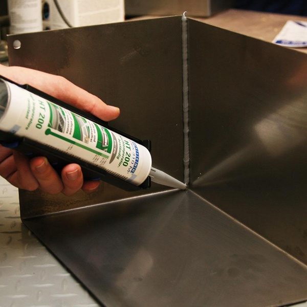 Для эластичной фиксации поверхностей, сделанных из различных материалов, применяют высокотемпературный клей-герметик серии Flex подсерии HT 200 от известного бренда Weicon. Он представляет собой пастообразный состав серого цвета на MS-полимерной основе. Высокая температурная стойкость от -30 до 200 градусов Цельсия позволяет склеивать и герметизировать детали, которые впоследствии подвергаются термоокраске: металлы и пластик. Сферой его применения выступают системы вентиляции и кондиционирования, кузова машин, грузовые контейнеры, вагоны и металлообработка. Содержимое поставляется в картридже в объеме 310 мл и характеризуется быстрой фазой первичной полимеризации пленкой, которая составляет 10 мин. После полного затвердевания клея допустима шлифовка и термоокраска. Его также можно покрыть лаком или любой краской кроме красок на основе алкидной смолы. При этом важно соблюдать условие сырое-на-сыром, то есть производить покрытие после образования пленки первые 3 часа. Скорость застывания основы в течение суток составляет 3-4 мм. Максимальное заполнение зазоров достигает 10 мм. Допустимая температура применения для работы с ним должна находиться в диапазоне от +5 до +35 градусов Цельсия. Срок годности клея-герметика составляет 1 год при температуре от +5 до +25 градусов Цельсия.