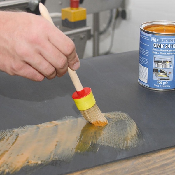 WEICON GMK 2410 – контактный клей, содержащий растворители на основе полихлоропрена (CR). Используется для упругого и крепкого склеивания больших поверхностей резины с резиной и резины с металлом. WEICON GMK 2410 применяется также для склеивания пористой резины (например, неопрена), кожи, войлока, изоляционных материалов, текстиля, дерева и многих пластиков. После отвердевания влагоустойчив. WEICON GMK 2410 не подходит для таких материалов, как: пенополистирол, полиэтилен, полипропилен, пена ПВХ, искусственная кожа.