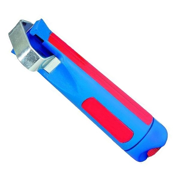 Подходит для всех распространенных круглых кабелей диаметром от 28 до 35 мм. Кабельный нож оснащен эргономичной, противоскользящей формой ручки. При помощи регулирующего винта в конце инструмента производится плавное бесступенчатое выставление глубины реза, что предотвращает повреждение изоляции жил проводов. Внутри инструмента вращающееся лезвие-эксцентрик автоматически поворачивается для поперечного и продольного реза.