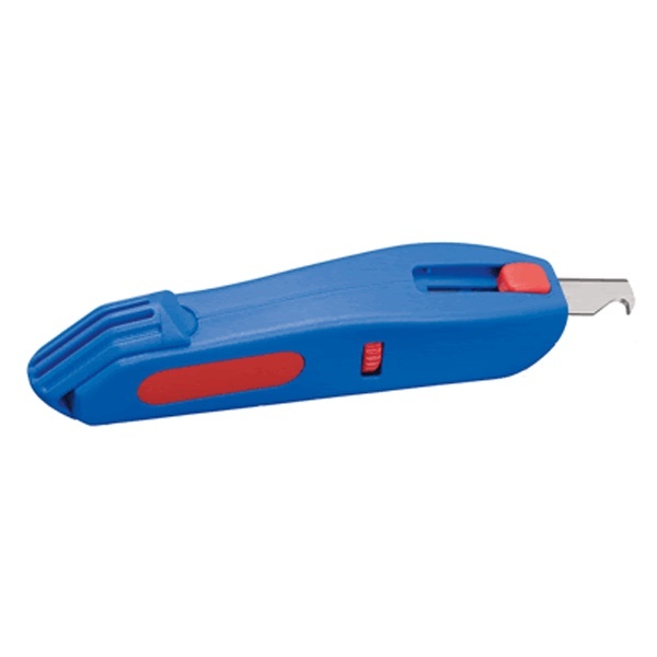 Предназначен для удобного и быстрого снятия ПВХ-оболочки круглых кабелей диаметром от 4 до 28 мм.Втроенное поворотное лезвие-эксцентрик для поперечного, продольного или спирального надрезания оболочки кабеля.Регулировочный винт на корпусе позволяет точно установить необходимую глубину реза оболочки кабеля.Инструмент имеет запасное лезвие-эксцентрик, скрытое в рукоятке.Внешний разделочный нож с крюком закрывается колпачком для безопасности хранения и работы.