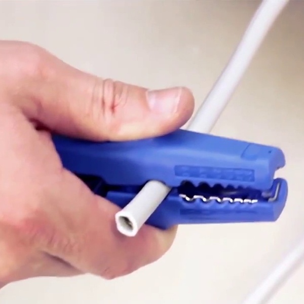 Встроенный резак, поперечная и продольная резка ПВХ-оболочки кабеля, снятие ПВХ-изоляции проводов. Снятие оболочки на кабелях диаметром от 8 до 13 мм. Снятие изоляции для всех видов гибких и жестких проводов с сечениями жил 0,5/0,75/1,5/2,5/4,0/6,0 мм2. Встроенный резак для проводов с гибкими жилами до 6 мм2 (для жестких жил до 4 мм2).