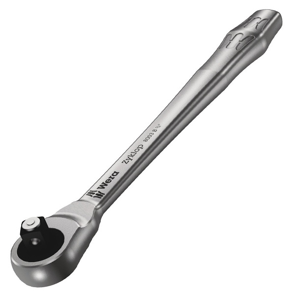 Кованая цельнометаллическая трещотка со сдвижным квадратом компании Wera серии 8003 В Zyklop Metal оснащена шариковым фиксатором и предназначена для торцовых насадок и переходников с квадратным приводом 3/8 дюйма. Выдвижной квадрат обеспечивает легкое переключение направления вращения и функцию надежной блокировки головок. Благодаря наличию двойного храпового механизма 38 прочных зубцов трещотки превращаются в тонкую конструкцию из 76 мелких зубцов с углом возврата всего 4,7 градуса. Трещотка выполнена из особо прочной хромомолибденовой стали и имеет хромированное покрытие поверхности. Трещоточный ключ вытянутой формы с длинным рычагом особенно удобен для работы в очень узком ограниченном пространстве. Длина ключа составляет 222 мм, его вес равен 334,06 грамма, толщина головки – 27 мм, ширина головки – 29 мм. Он имеет гарантию от производителя сроком на 1 год.
