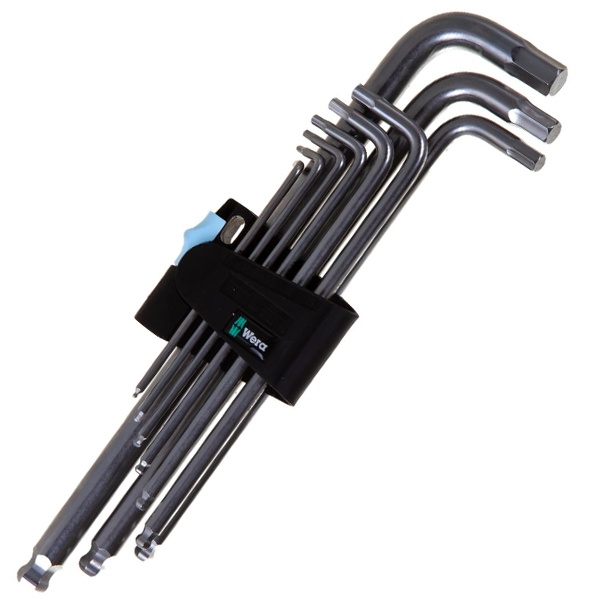 Набор высококачественных Г-образных ключей фирмы Wera под внутренний шестигранник, из специальной стали. Специальная сталь исключает распространение контактной ржавчины. Hex-Plus увеличивает площадь контакта с головкой винта. За счёт этого до минимума снижается концентрация напряжения в профиле, что практически исключает вероятность разрушения головки винта. С шариковым наконечником под шестигранник на длинной стороне: за счёт шаровидного профиля можно отклонять или поворачивать ось инструмента относительно оси винта, что позволяет завинчивать буквально "за углом". В практичном зажиме, износостойкий материал которого гарантирует надёжную посадку и простое извлечение инструмента.