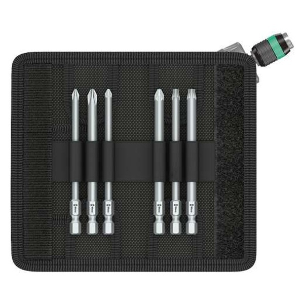 Компактный инструмент Wera с многокомпонентной ручкой Kraftform пистолетной формы для высокой скорости работы и особенно эргономичного завинчивания. Встроенный магазин для хранения битов. С трещоткой: тонкий механизм зацепления для малого угла возврата всего 8°, дисковый переключатель (вращение вправо, блокировка, влево), максимальный момент силы до 50 Нм; шестигранный стержень с патроном Rapidaptor под шестигранный хвостовик 1/4", с магнитом. 6 битов PH, PZ и TORX®, длина 25 мм, подходит для держателя по стандарту DIN ISO 1173-D 6,3. С практичным футляром для крепления на поясе.