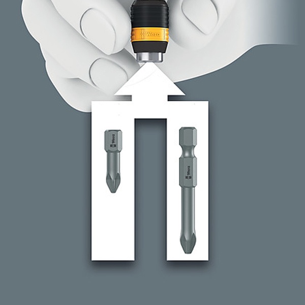Зажим с внутренним шестигранником 1/4", с быстросменным патроном Wera и технологией Rapidaptor с функцией быстрой установки, быстрого извлечения, быстрого вращения, универсального зажима, управления одной рукой.