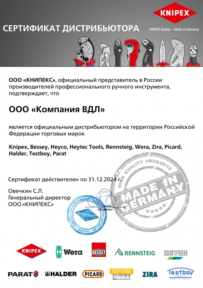 Cертификат Wera