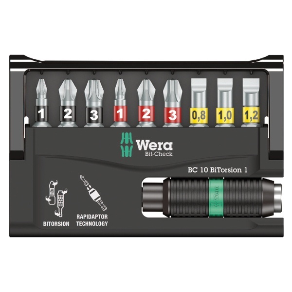 WE-056374 Набор бит Wera с битодержателем Rapidaptor 10 предметов Bit-Check 10 BiTorsion 1