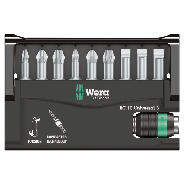 Битодержатель Rapidaptor с набором битов (9) для шуруповёрта в футляре Bit-Check 10 Universal 3 WE-056375