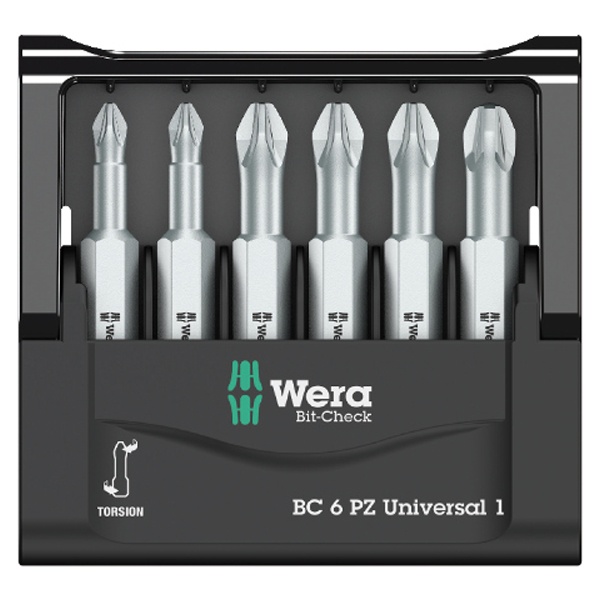 Комплект битов (6 штук) для шуруповёрта в футляре Bit-Check 6 PZ Universal 1 WE-056471